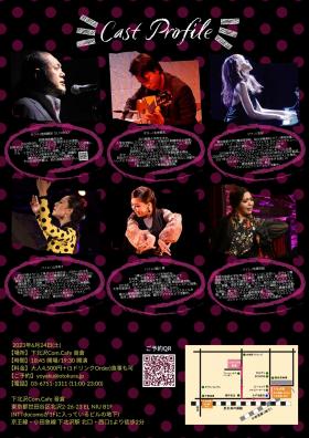| 料金 | ¥3800+1drink¥500 中学生迄3000円+1drink¥500 当日¥4000+1drink¥500 |