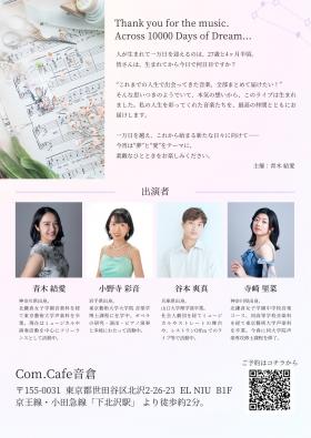 | 出演 | 青木結愛(vo) 小野寺彩音(Pf) Guest:寺崎里菜(Vo) 谷本爽真(Vo) |